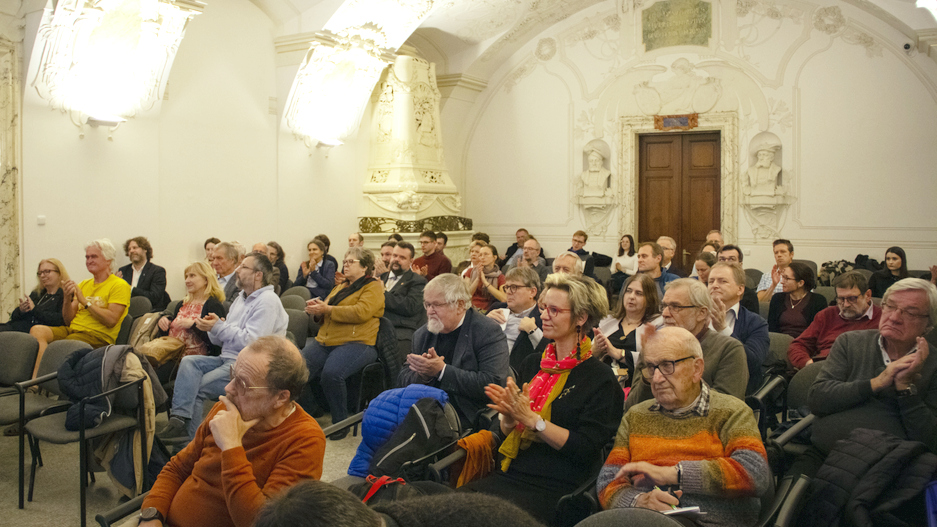 Diskusi v Mendelově refektář Augustiniánského opatství moderoval předseda Učené společnosti Martin Loebl (AGATE Centrum MFF UK).